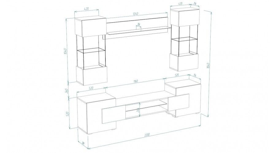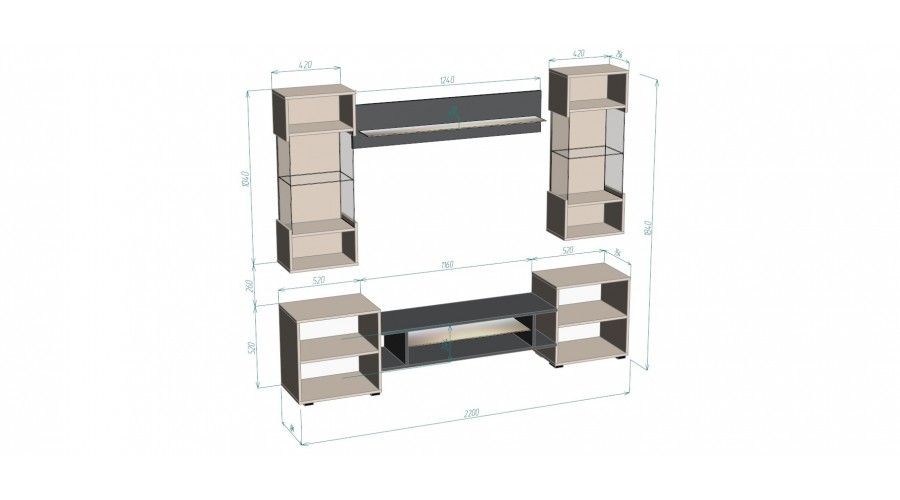 Ниша под ТВ: 1160 мм при размещении ТВ на тумбе.