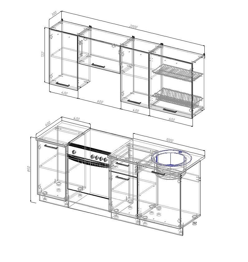 Размеры (Ш*В*Г)(мм): 2000*0*600
