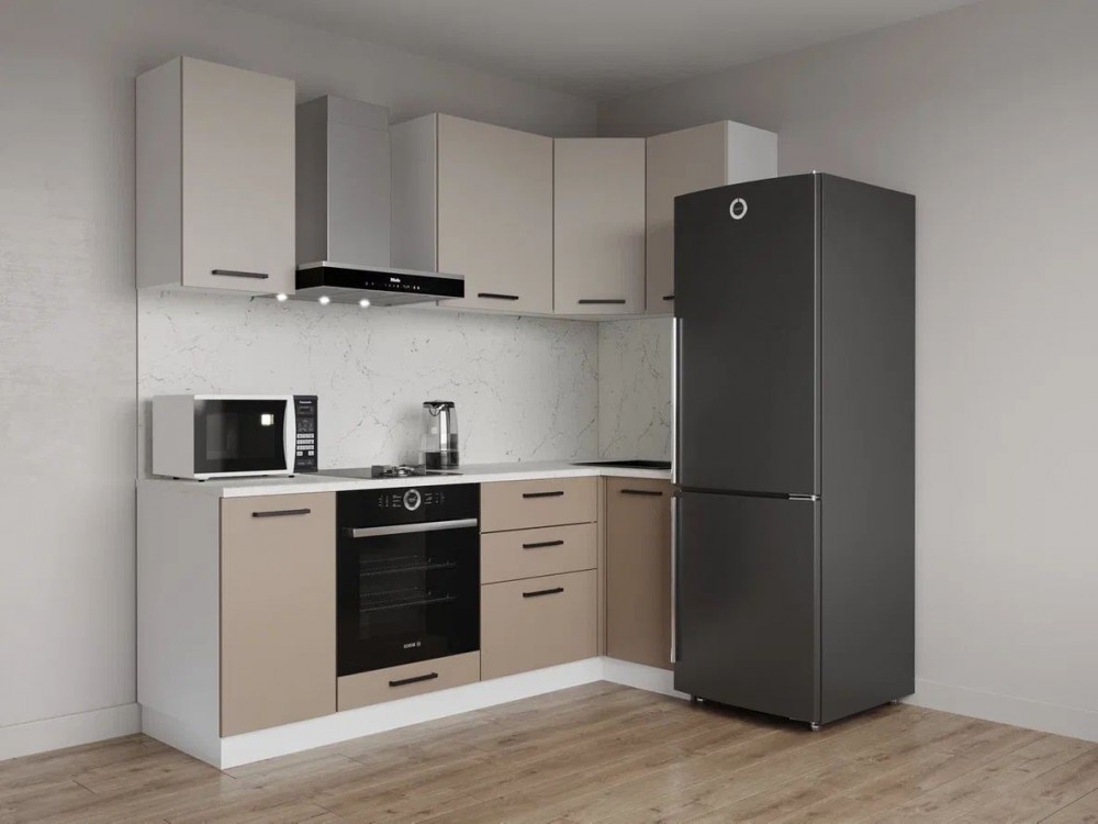Кухонный гарнитур угловой Каппучино 2200*1000 (Стол. 26мм)